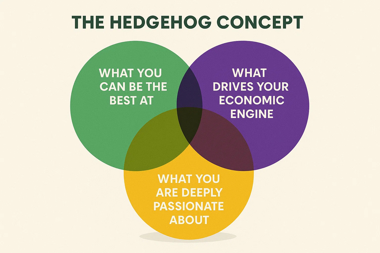Distill your strategy to the intersection of what you excel at, what fuels your profits, and what ignites your passion; this Hedgehog Concept guides every decision like a simple yet powerful defense. Companies without this focus fall into reactive cycles, eroding momentum.