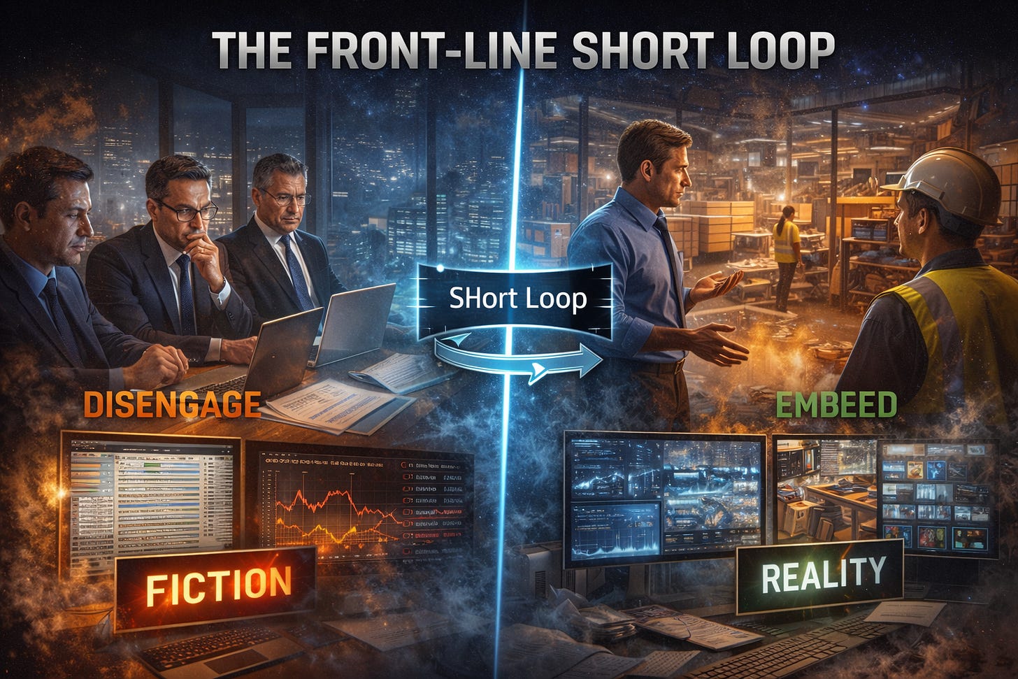 To combat this, you must establish a Short Loop: a direct line of sight between the site of the problem and the site of the decision. If you aren’t visible on the front lines, you lose the ability to influence the culture and verify your strategy. Without a short loop, your dashboards eventually become fiction. Decisions then optimize for reported performance, not actual outcomes. That’s how companies hit their numbers while quietly losing the market.