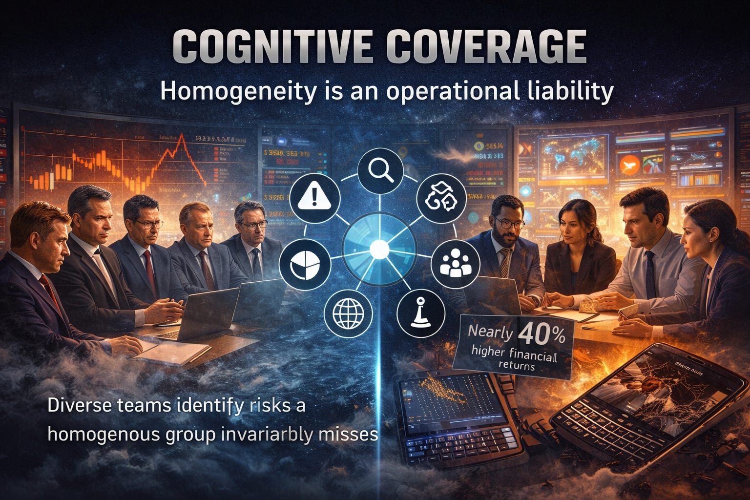 Homogeneity is an operational liability. For a strategist, Cognitive Coverage is the measure of how many distinct risk lenses are present in the room during a crisis. If your executive team shares the same professional pedigree and risk tolerance, you have effectively paid for the same perspective five times.