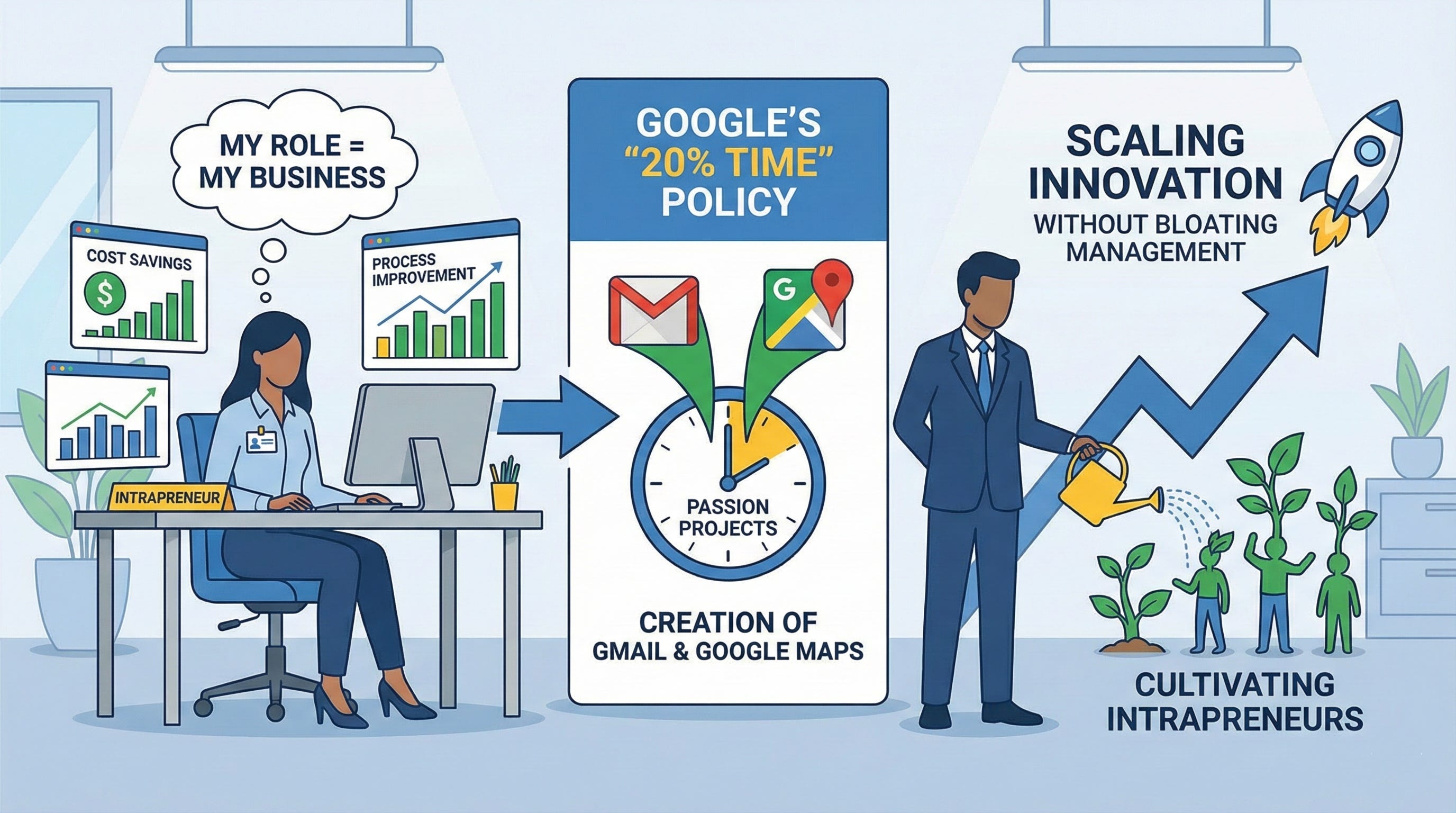 Companies like Google formalized this with “20% time,” which allowed engineers to work on passion projects. This policy led to the creation of Gmail and Google Maps. For the ambitious leader, cultivating intrapreneurs is the secret to scaling innovation without bloating management.