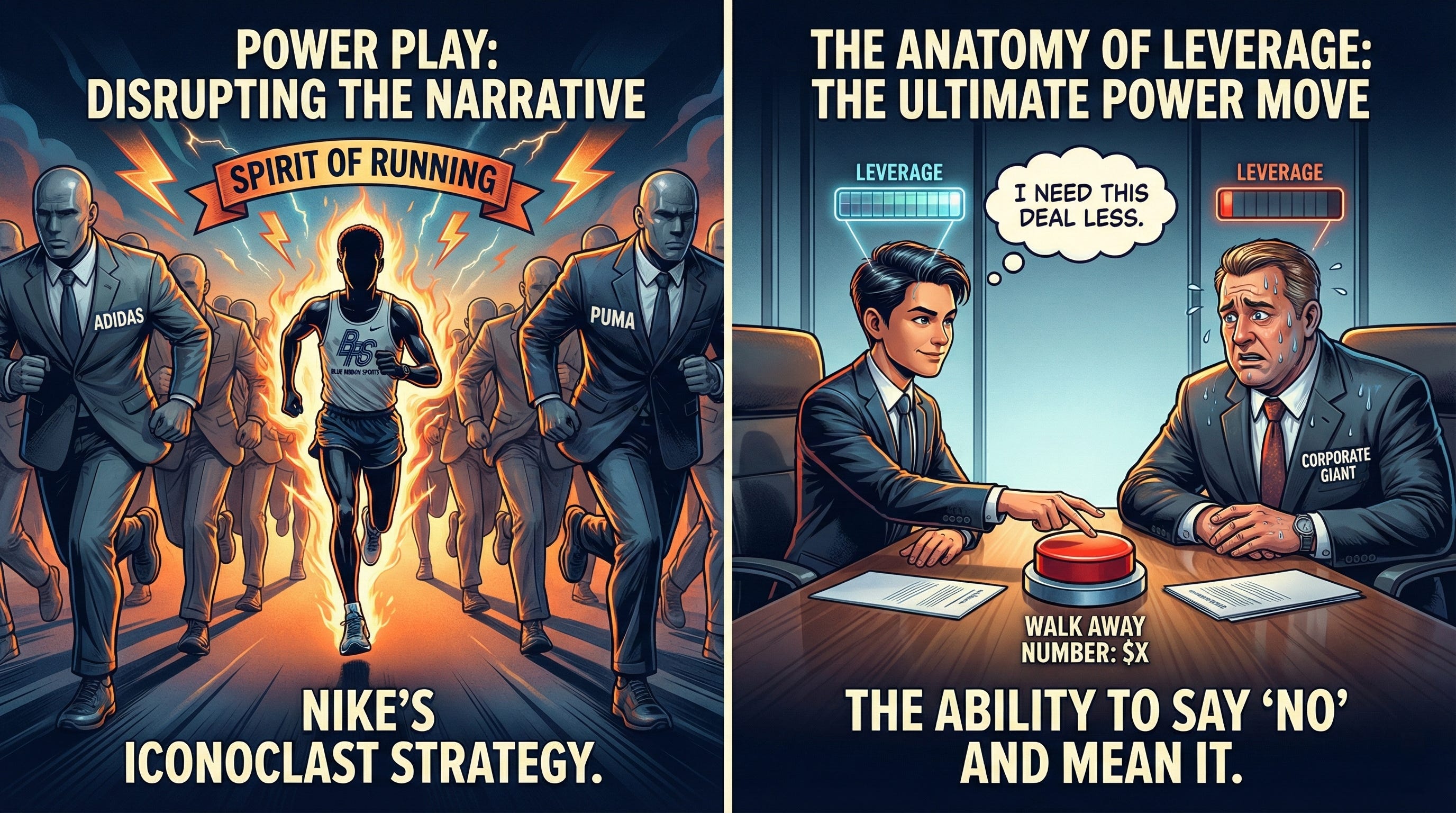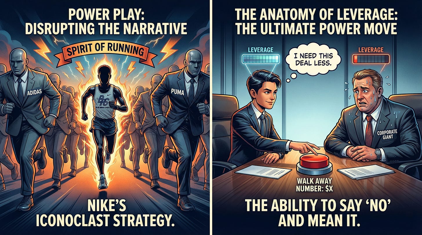 When Nike was a scrappy upstart called Blue Ribbon Sports, they couldn’t outspend Adidas or Puma. Instead, Phil Knight engaged in a power play by signing athletes who were rebels and iconoclasts, aligning the brand with the “spirit” of running rather than the “business” of shoes.
