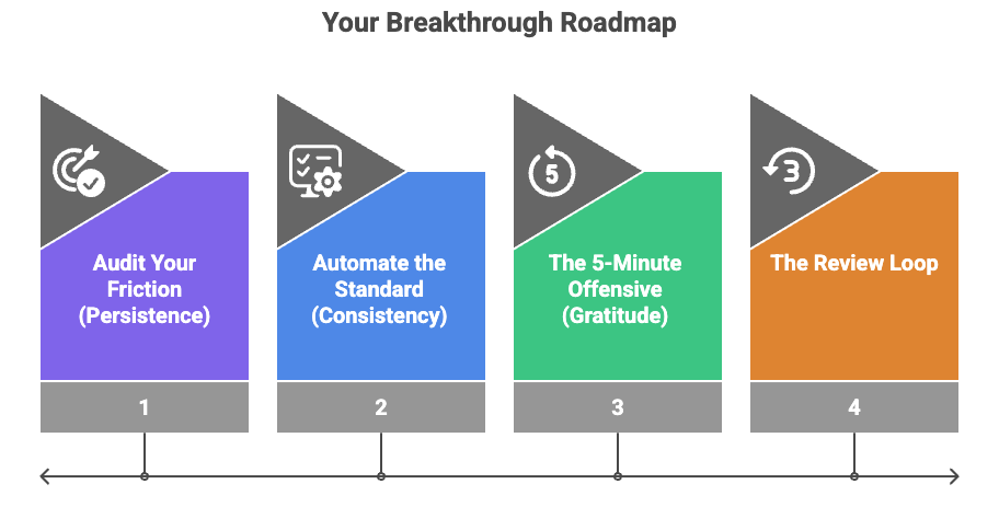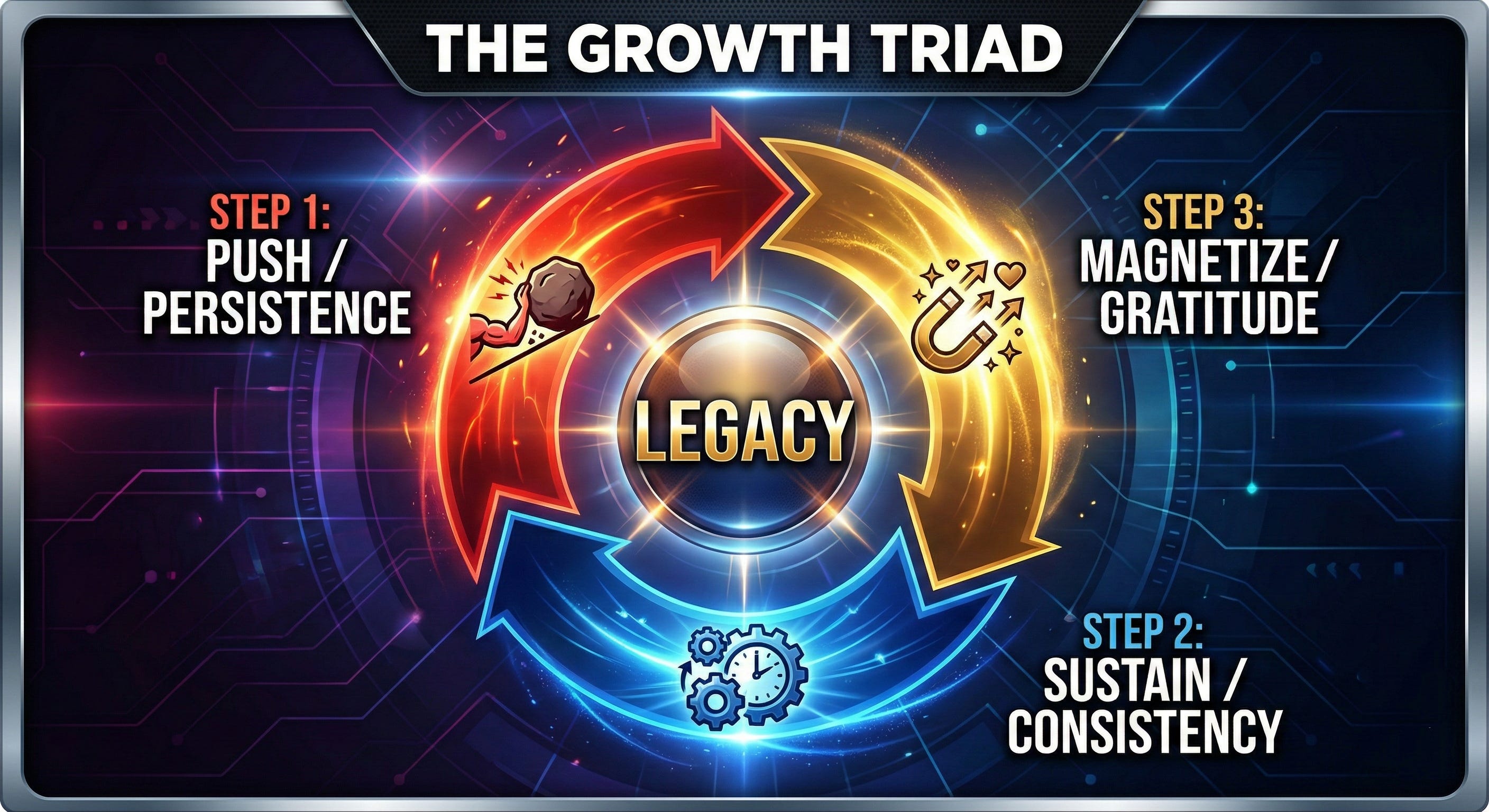 The triad is not a menu; it is a sequence. You cannot skip to gratitude without the persistence to build something worth being grateful for. You cannot maintain success without the consistency needed to secure it.