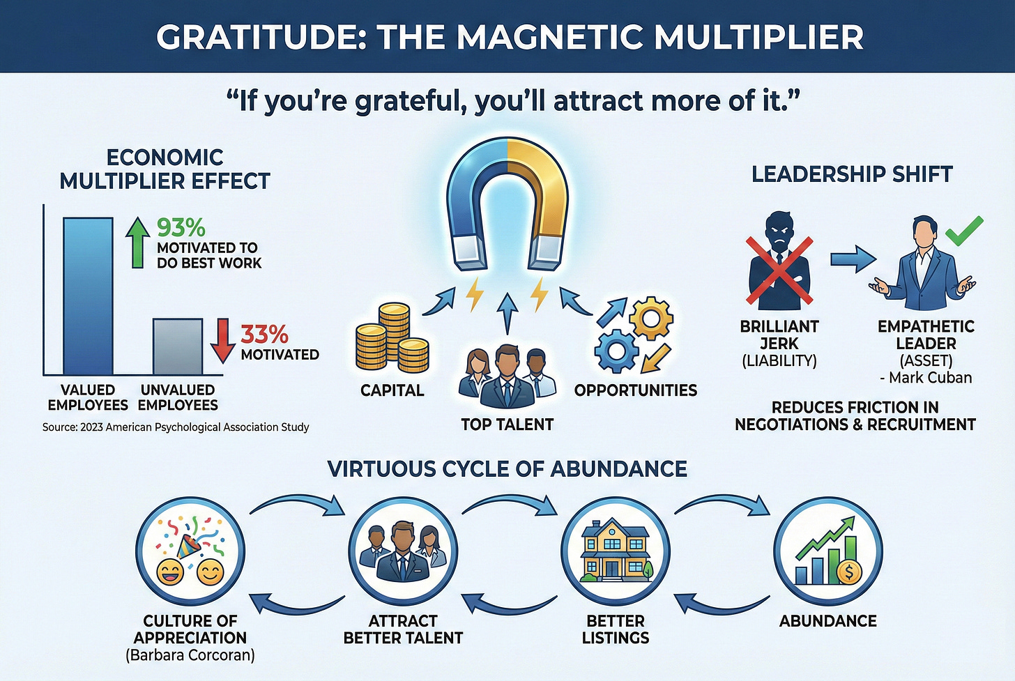 Gratitude acts as a magnet for talent and capital. High-performers do not stay in environments where they are commoditized.