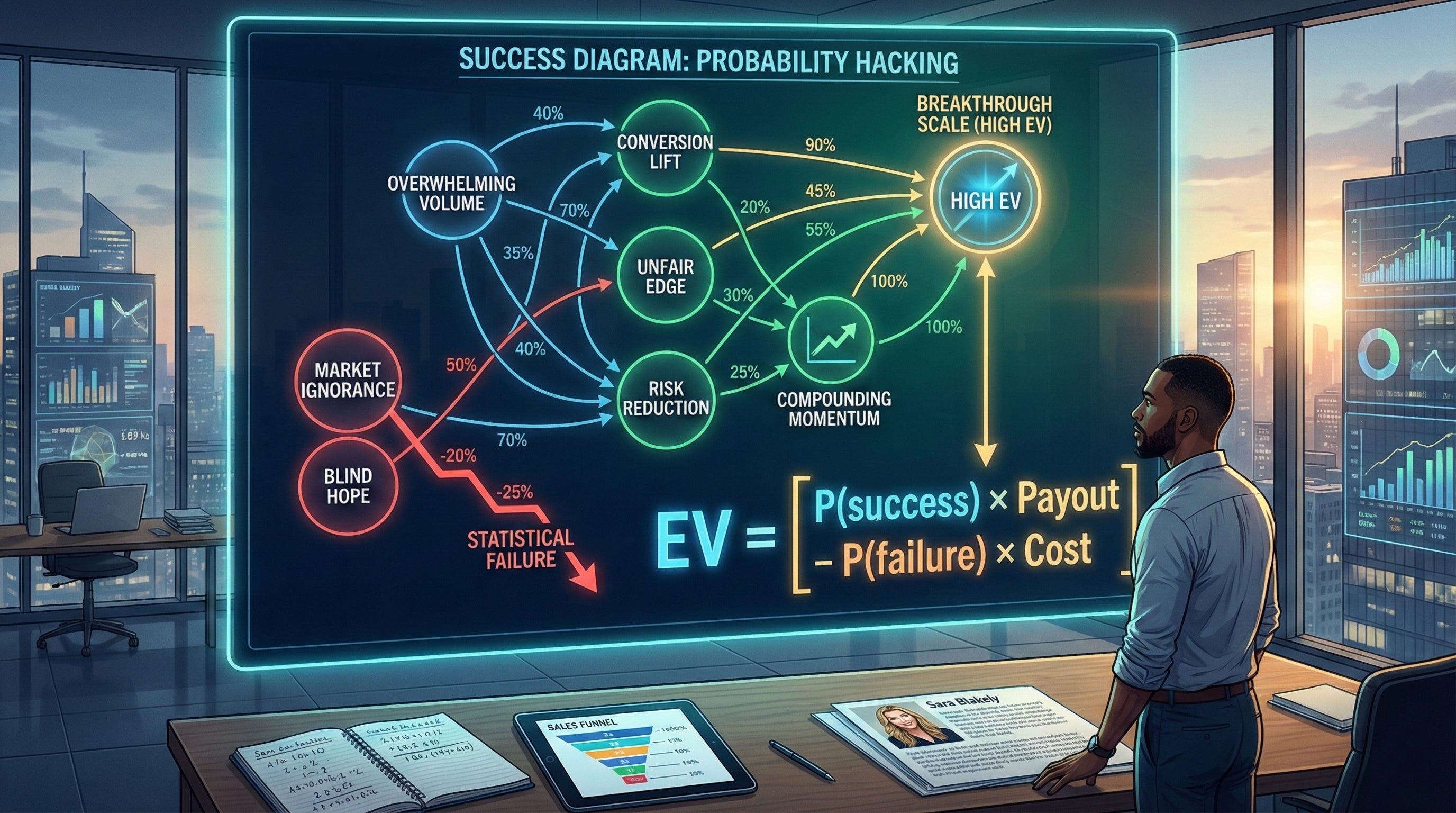Ambition is ultimately an expected value problem. The most formidable leaders do not rely on luck or blind hustle. They understand that success requires identifying, pricing, and reducing avoidable risk. By mapping the exact probabilities of your environment, you can systematically reduce variance and raise your expected value.