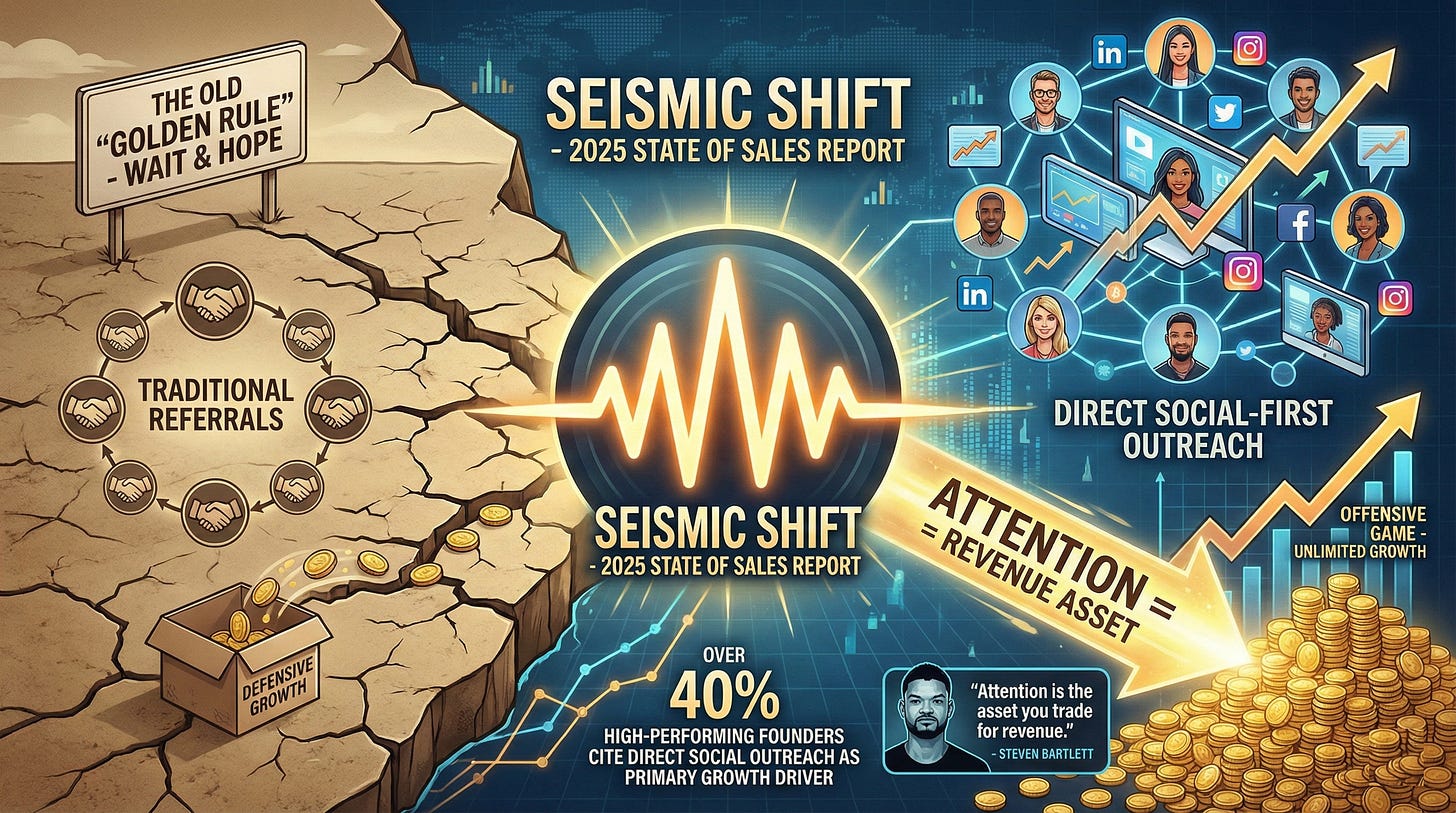 For decades, the “golden rule” of consulting and B2B services was simple: do exceptional work, and the network will provide. But data from the 2025 State of Sales Report indicates a seismic shift: over 40% of high-performing founders now cite direct, social-first outreach as their primary growth driver, significantly outpacing traditional referral networks.