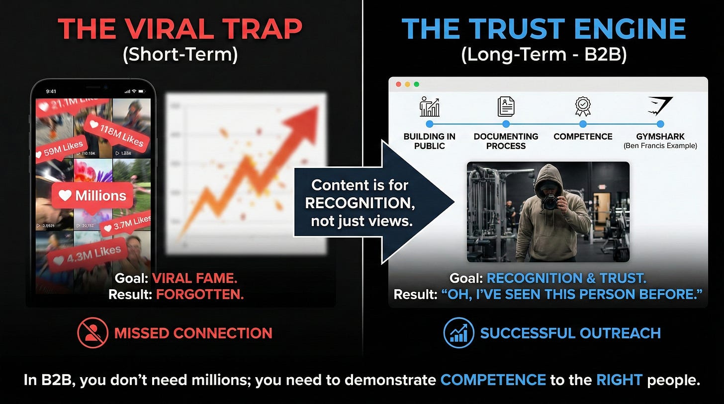 Ben Francis, founder of Gymshark, didn’t just build a clothing brand; he documented the entire process. He built trust by “building in public.” In the B2B world, this is your secret weapon. You don’t need millions of subscribers; you need to demonstrate competence to the right people.