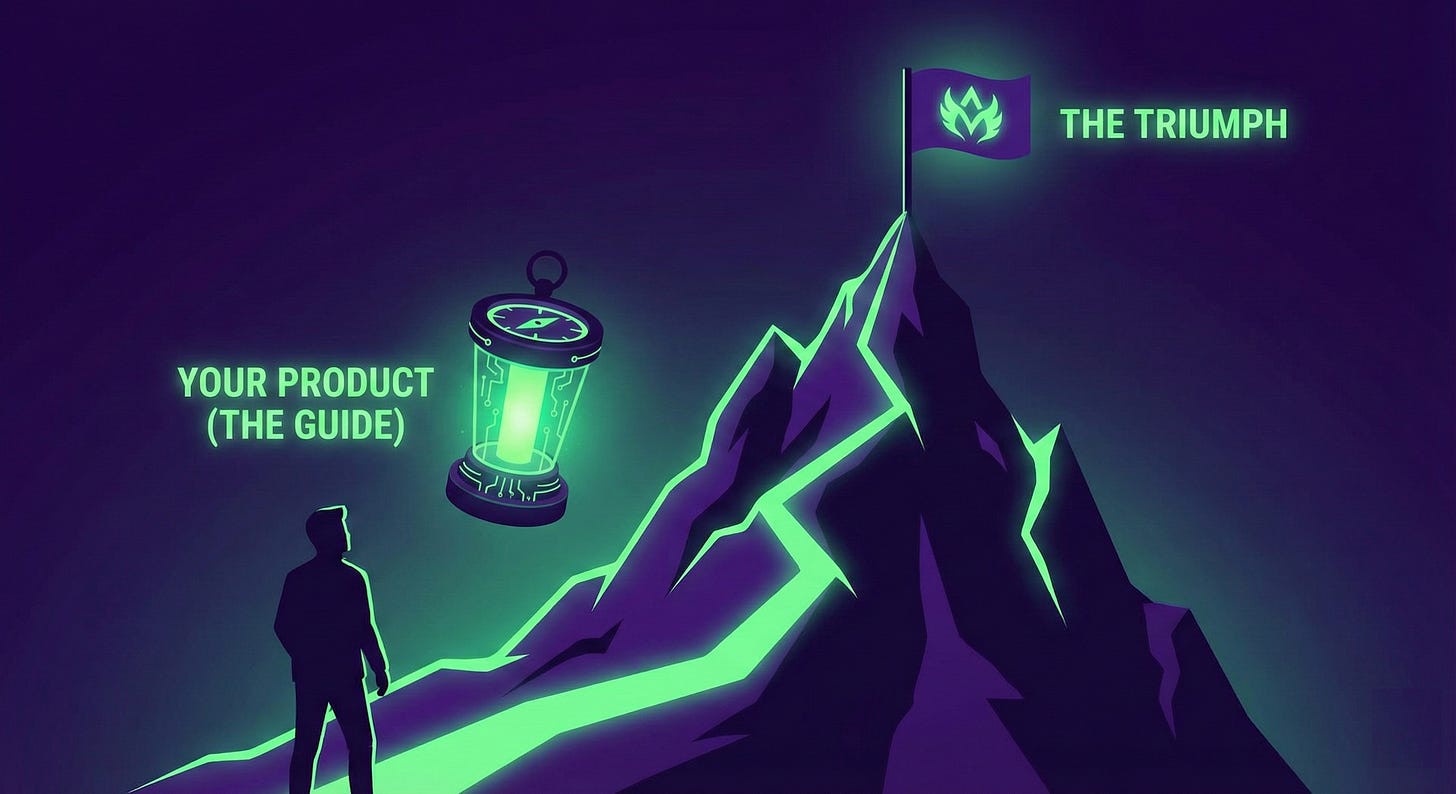 Act 3: The Resolution. Your product enters the stage. It is the turning point that allows triumph over the villain, leading to a “new normal” where life is fundamentally better.